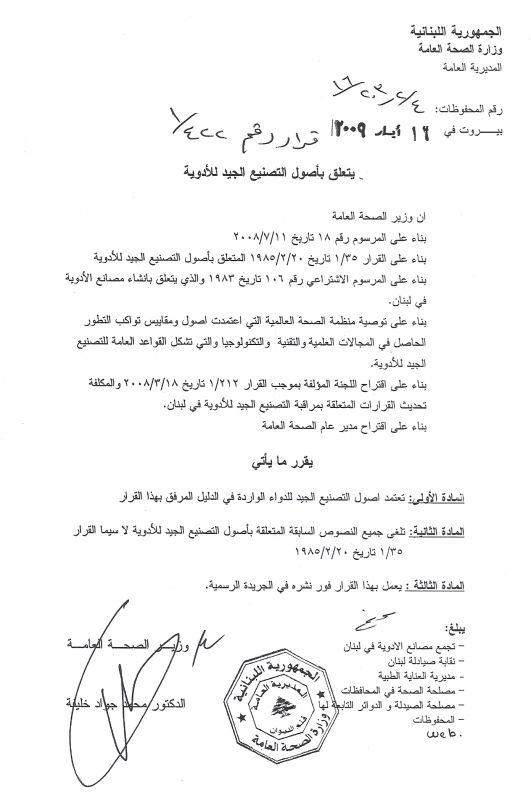 Good Manufacturing Practice - GMP Lebanon - 2009