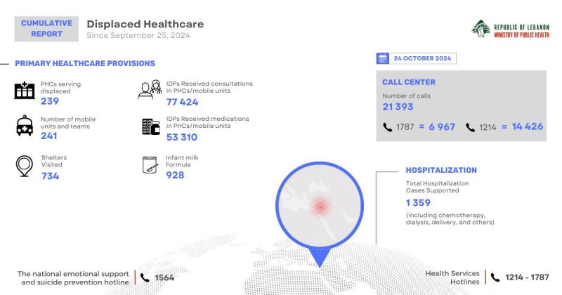 تنشر وزارة الصحة العامة التقرير التراكمي للدعم الذي تم تقديمه للمواطنين النازحين.