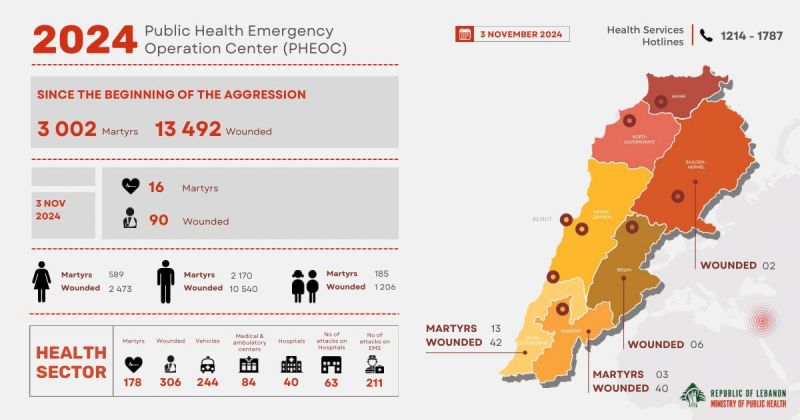 صدر عن مركز عمليات طوارئ الصحة العامة التابع لوزارة الصحة العامة التقرير اليومي لحصيلة وتداعيات العدوان الإسرائيلي على لبنان