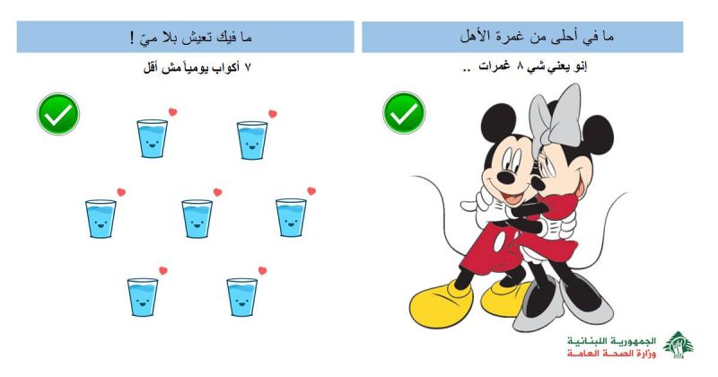 أطلقت وزارة الصحة العامة في احتفال أقامته في مقرها، اليوم الوطني لمكافحة البدانة عند الاطفال، تحت شعار "سوا لصحة أفضل"، تخللها عشر نصائح تراوحت ما بين "النوم لعشر ساعات على الأقل، وتسع ضحكات من القلب، وعناق مليء بالحب، وسبع أكواب مياه، وتناول الفواكه والحبوب والبروتين، الى ممارسة الرياضة لساعة يوميا، واستخدام الالعاب الألكترونية ومشاهدة التلفاز لأقل من ساعة يوميا"(للمزيد...)